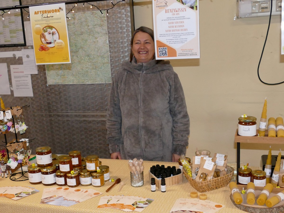 Eine Imkerin vom Schwetzinger Schlossgarten bot Honig an. Im Gang zum Produktionsbereich der Lions Club, der seinen Adventskalender verkaufte. Und weiter hinten, wo sonst die Abfüllanlage rattert, standen Biertischgarnituren für die Gäste. Jeder freie Quadratmeter war genutzt.