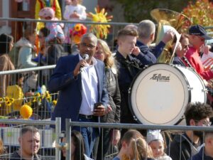 Vor dem neuen Rathaus endete der Umzug und die Kinder durften sich über die beliebten Sommertagsbrezeln freuen, die von städtischen Mitarbeitern und einer ganzen Reihe von Gemeinderäten ausgegeben wurden. Anschließend folgte die traditionelle Winterverbrennung – mit diesem Brauch wurde der Winter feierlich verabschiedet und der Frühling eingeläutet. Auf dem Interimsschulhof erwartete die Besucherinnen und Besucher ein abwechslungsreiches Programm, organisiert vom GEBK Leimen, das für beste Unterhaltung bei Groß und Klein sorgte. Auch Oberbürgermeister John Ehret war gemeinsam mit seiner Frau vor Ort und freute sich über die positive Resonanz und die gute Stimmung im Herzen der Stadt Leimen.