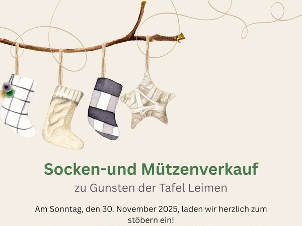 Der Erlös geht an die Tafel Leimen. Wer also etwas Wärmendes für den Winter sucht oder ein sinnvolles Geschenk, findet hier beides: Qualität und Solidarität. Hinter der Aktion steckt ein kleines Team mit viel Ausdauer – rund 300 Paar Socken und Mützen wurden gestrickt, gewaschen, sortiert und liebevoll verpackt.