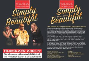 Die Formation T.S.O.S. – The Shades of Soul, bestehend aus ehemaligen Mitgliedern der US-Army-Band, kehrt mit ihrer gefeierten Revue „Simply Beautiful II“ zurück auf die Bühne. In bewährter Manier feiern die Künstlerinnen und Künstler die goldene Ära der Soul- und Popmusik – insbesondere jene Periode der 1960er und 1970er Jahre, die als eine der fruchtbarsten in der amerikanischen Musikgeschichte gilt.
