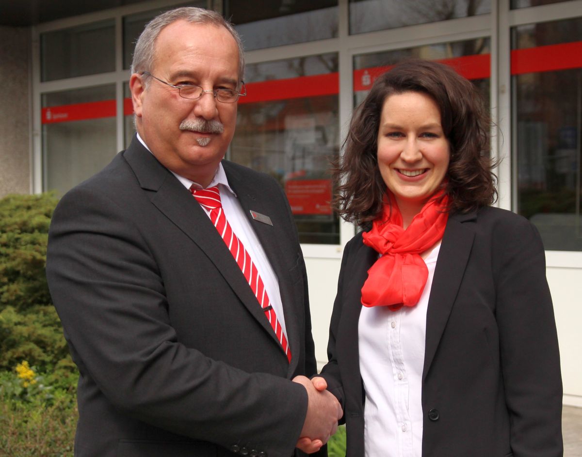 Sarah Fleckenstein heißt die neue Sparkassen-Filialleiterin, die damit die Nachfolge von Harald Schmitt antritt