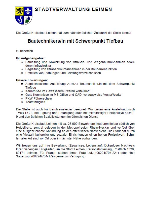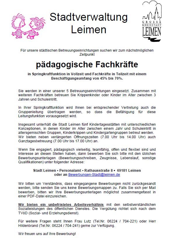 Stellenanzeigen der Stadt Leimen