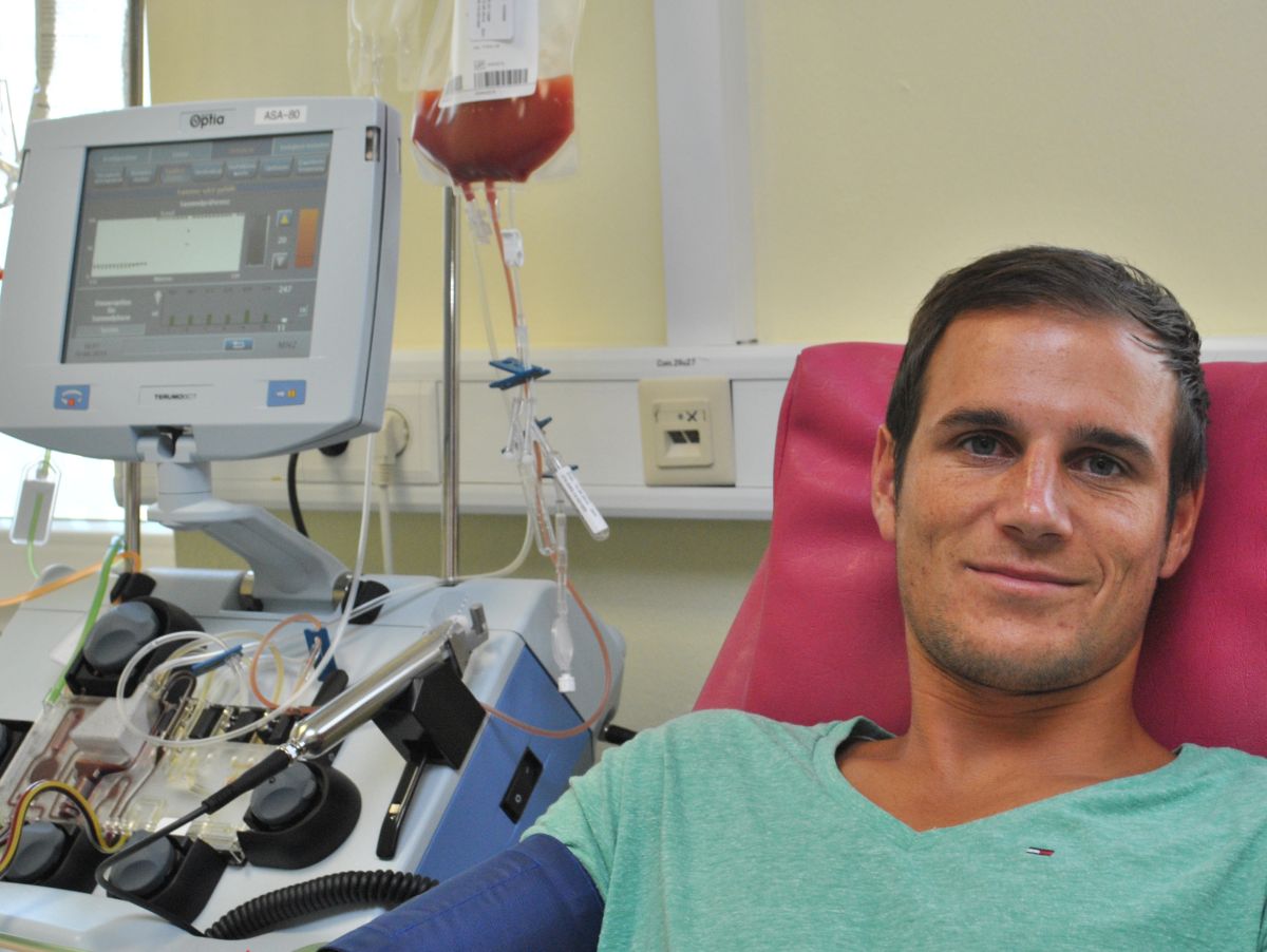 Während sich also Manuel Stiefler auf die Entnahme vorbereitet hat, wurde auch sein ihm unbekannter Patient konditioniert. Denn sein Immunsystem muss soweit ausgeschaltet werden, dass der Körper die fremden Stammzellen auch annimmt. Wenn der Spender nun in dieser Phase ausfallen würde, wäre das Leben des Patienten massiv gefährdet. Aber die Bundesliga hatte die Saison abgeschlossen und Manuel Stiefler konnte ungehindert mit seiner Freundin nach Birkenfeld in die Entnahmestation der Stefan-Morsch-Stiftung reisen. „Ich hatte nur ungewohnte Rückenschmerzen als Nebenwirkungen des Botenstoff“, erzählt der Fußballer, der in seiner Freizeit gerne Tennisspielt und ansonsten seine Familie in der Nähe von Bayreuth besucht. Die Entnahme verlief problemlos: „Ich freue mich, dass ich helfen kann.“ Bei seinen jetzigen Mannschaftskollegen in Sandhausen, hat er Aufklärungsarbeit geleistet. „Die wollten natürlich genau wissen wie das funktioniert.