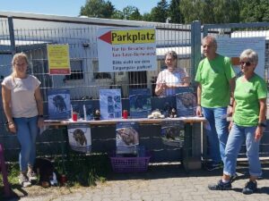 „Das Tierleid fängt bereits am Anfang der Kette an. Die Tiere werden in ihrem Land je nach Nachfrage produziert, anders kann man es leider nicht ausdrücken. Die Haltungsbedingungen sind katastrophal. Bis diese Tiere dann in Deutschland sind, haben sie die Hölle hinter sich, denn auch beim Transport geht es nur um Profit und die Ware Hund. Hier angekommen sollen sie dann funktionieren, wie wir es wollen.“ Henriette Stutz bekommt Gehör und bevor die Menschen weiterziehen, bedanken sie sich und sind von der Aktion begeistert.