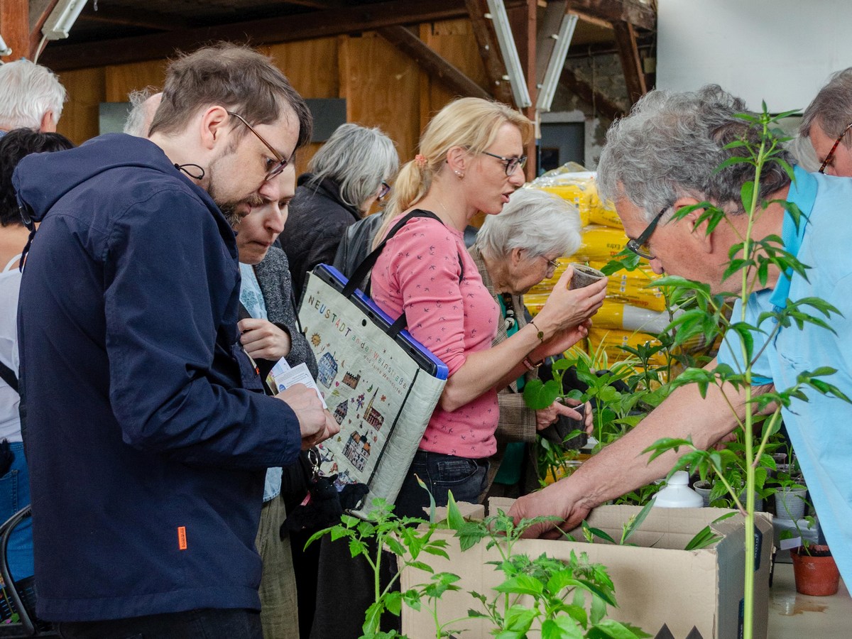Schnell füllte sich die Halle mit Menschen jeden Alters. Ein junges Paar kam vorbei, um ihre neue Wohnung zu begrünen. Andere ließen sich überraschen und nahmen hier oder dort etwas mit, das sie bislang noch nicht im heimischen Garten ausprobiert hatten. So schnell sich die Tische gefüllt hatten, so schnell zeigten sich die ersten Lücken. Gut, dass immer noch weitere Pflanzen gebracht wurden, auf die man einen prüfenden Blick werfen konnte.