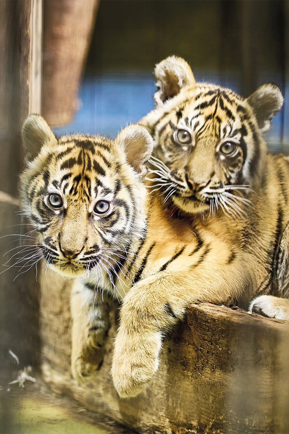 Tigernachwuchs: Die zwei kleinen Sumatra-Tigerinnen heißen Sari und Raya