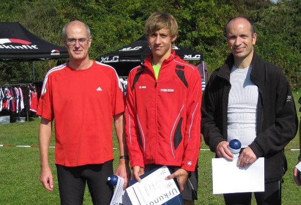 Bei optimalem Laufwetter startete das Läuferfeld auf dem Sportplatz. Schon nach ca. 200m musste der erste knackige Anstieg raus aus dem Stadion genommen werden. Ralf hatte sich für den heutigen Lauf einiges vorgenommen und lief ganz vorne mit. Zunächst lag unser Läufer aus St. Ilgen auf Platz 2, nach Kilometer 4 hatte sich das Spitzen-Duo vom restlichen Feld abgesetzt und die Führung wechselte mehrfach. Bei Kilometer 7 war Ralf mit einem kleinen Vorsprung noch auf Siegerkurs. Beim Einlauf ins Stadion ging es nochmal bergab und man musste eine scharfe Kurve laufen. Just zu diesem Zeitpunkt erfolgte der finale Angriff des späteren Gesamtsiegers. Ralf hielt nochmal dagegen, aber die fast 30 Jahre jüngeren Beine des Kontrahenten waren dann doch etwas schneller. Mit 1sec. Rückstand auf den Tagessieger des 7,5 km Laufes, kam Ralf nach 28:36 min. ins Ziel. Seine Altersklasse hatte Ralf souverän gewonnen und 2. Platz in der Gesamtwertung war dann doch OK.