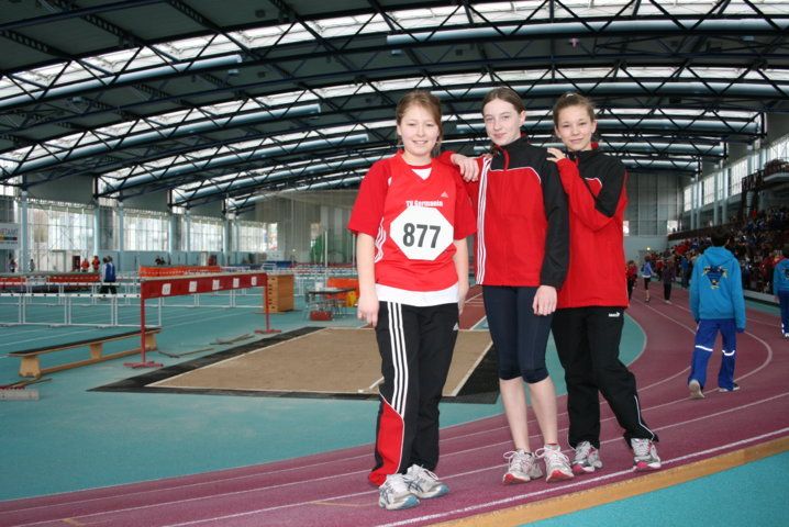 Am Sonntag den 04.03.2012 hieß es für die B-Schülerinnen Michele, Celine und Jessica früh aufstehen. Um 7:45 Uhr war Abfahrt am Waldstadion. In Frankfurt angekommen, staunten die Athletinnen nicht schlecht, denn eine solch tolle Leichtathletikhalle bekommt man nicht jeden Tag zu sehen. Den Auftakt an diesen Tag machte Jessica mit ihrem Kugelstoß Wettkampf. Zum Saisonauftakt konnte Jessica nicht ganz an die Leistungen aus dem letzten Jahr anknüpfen. Dennoch absolvierte sie einen guten Wettkampf. Bei Michele stieg langsam die Nervosität. Denn für sie war es heute der erste richtige Wettkampf überhaupt. Für sie galt es Erfahrung zu sammeln auf der 60m Strecke. Unterstützt wurde sie hierbei von ihren Sportkameradinnen Celine und Jessica, die ebenfalls über die 60m starteten. Es reichte zwar nicht ganz für den Endlauf, aber in ihrem Vorlauf belegte sie einen guten 3. Platz. Celine hatte als Ziel den Endlauf im Visier. Mit dem 3. Platz in ihrem Vorlauf verfehlte sie den Endlauf knapp. Sie selbst war damit nicht zufrieden und hat auch gleich gewusst woran es lag. Auch wenn nicht alle zufrieden waren, war alleine schon die Halle eine Reise wert. Die Athletinnen traten gemeinsam mit Lennard, der seine Kameradinnen den Tag über anfeuerte, den Heimweg an. Alle freuen sich schon auf die nächsten Wettkämpfe, wie immer werden wir darüber zeitnah berichten.