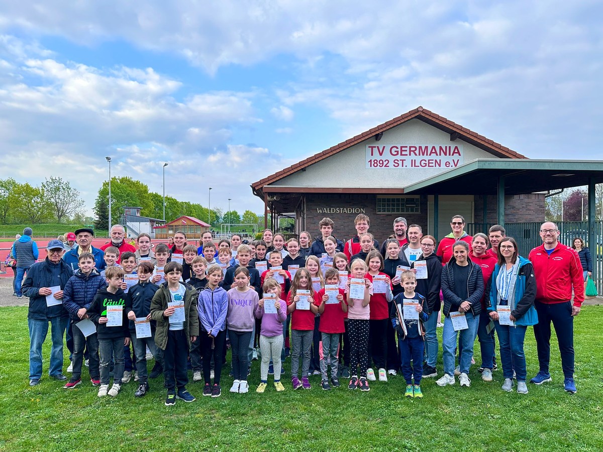 (sw – 21.4.26) Am Dienstag, den 14. April fand die Verleihung des Deutschen Sportabzeichens für die Sportler des TV Germania St. Ilgen am Waldstadion St. Ilgen statt. Im Jahr 2025 haben insgesamt 99 Sportler und Sportlerinnen das Sportabzeichen absolviert. 16 Teilnehmer erreichten das bronzene Abzeichen, das silberne Abzeichen ging an 36 Teilnehmer und das goldene Abzeichen bekamen 47 Teilnehmer. Die jüngste Teilnehmerin war zum Zeitpunkt der Abnahme 6 Jahre alt; der älteste Teilnehmer war 82 Jahre alt. Der TV Germania freut sich sehr über die Erfolge dieser Athletinnen und Athleten und wünscht ihnen auch viel Erfolg bei zukünftigen Sportabzeichen.