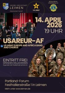 (24.3.26) Ein Hauch von Broadway und New Orleans zieht in das Portland-Forum ein: Am Dienstag, den 14. April 2026, lädt die Stadt Leimen mit Unterstützung des Lions Club Leimen zu einem besonderen deutsch-amerikanischen Freundschaftskonzert ein. Zu Gast ist die renommierte „U.S. Army Europe and Africa Band & Chorus“, die unter der Leitung von Lieutenant Colonel Richard Winkels ein erstklassiges Programm präsentiert.