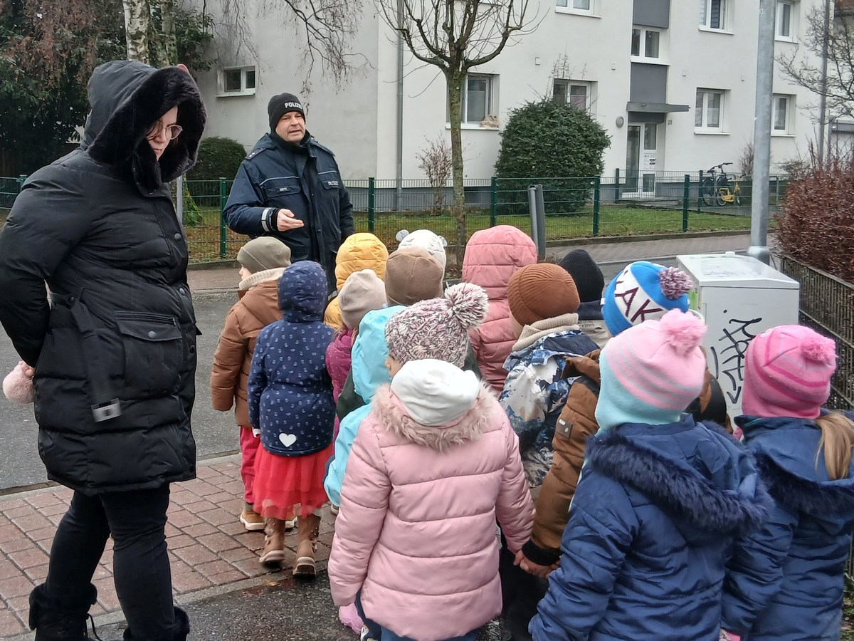 (ahe – 5.2.26) Am Mittwoch, den 28. Januar bekamen die Schulanfänger des St. Georg Kindergartens Besuch von der Verkehrsprävention Wiesloch. Im Rahmen der Verkehrserziehung erklärte der Polizeibeamte Herr Zeitz den Kindern mit einem Bilderbuch, auf anschauliche und kindgerechte Weise, wie sie sich sicher im Straßenverkehr verhalten. Gemeinsam wurde besprochen, wie man richtig eine Straße überquert, worauf man an Ampeln und Zebrastreifen achten muss und warum Sichtbarkeit, besonders in der dunklen Jahreszeit, so wichtig ist.
