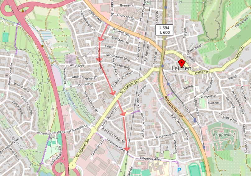 (27.2.25 mu) Der Glasfaserausbau in Leimen schreitet voran und macht leider auch Bauarbeiten unumgänglich. Seit dem 24. Februar wird in der Schwetzinger Straße im Bereich des Kreisverkehrs Stralsunder Ring bis zur L594 gearbeitet. Die Straße wird dafür halbseitig gesperrt. Diese Arbeiten werden voraussichtlich bis zum 31. März andauern. In der Zeit vom 5. bis 6. März muss im Rahmen dieser Arbeiten auch die Wilhelm-Haug-Straße voll gesperrt werden. Ersatzhaltestellen werden rechtzeitig vom BRN bekannt gegeben. Umleitungen sind ausgeschildert, die Verkehrsteilnehmer werden um Verständnis gebeten.