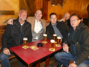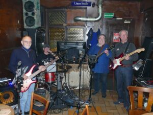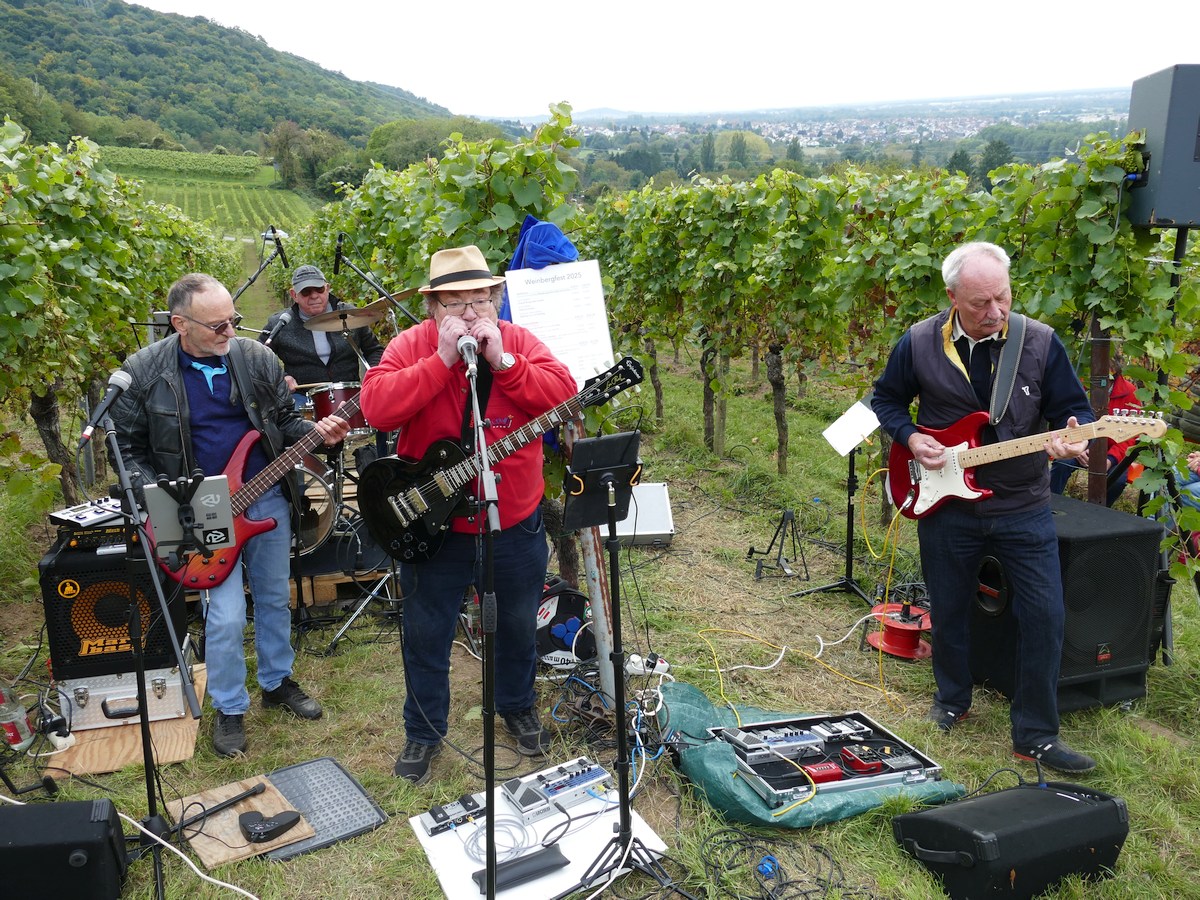 Bei einer nachfolgenden Einkehr in einer der ältesten und bekanntesten Kneipen der Unteren Straße konnte dann ein weiterer Leimener Promi bei einem Musik-Gig angetroffen werden. Hans Nägele, zuletzt mit der Band „Lost and Refound“, gemeinsam mit Ernst Lobstein, Volker Diehm und Wolfgang Baust beim Adam Müller Weinbergfest im musikalischen Einsatz, spielte dort ebenfalls auf. Vor zwar nicht ganz so viel Publikum wie im Weinberg (das Weinloch ist ja eher klein), aber ebenso begeisterten. Gute alte Rockhits en masse, viele davon mit echtem Mitsing-Charakter („Country Road“).