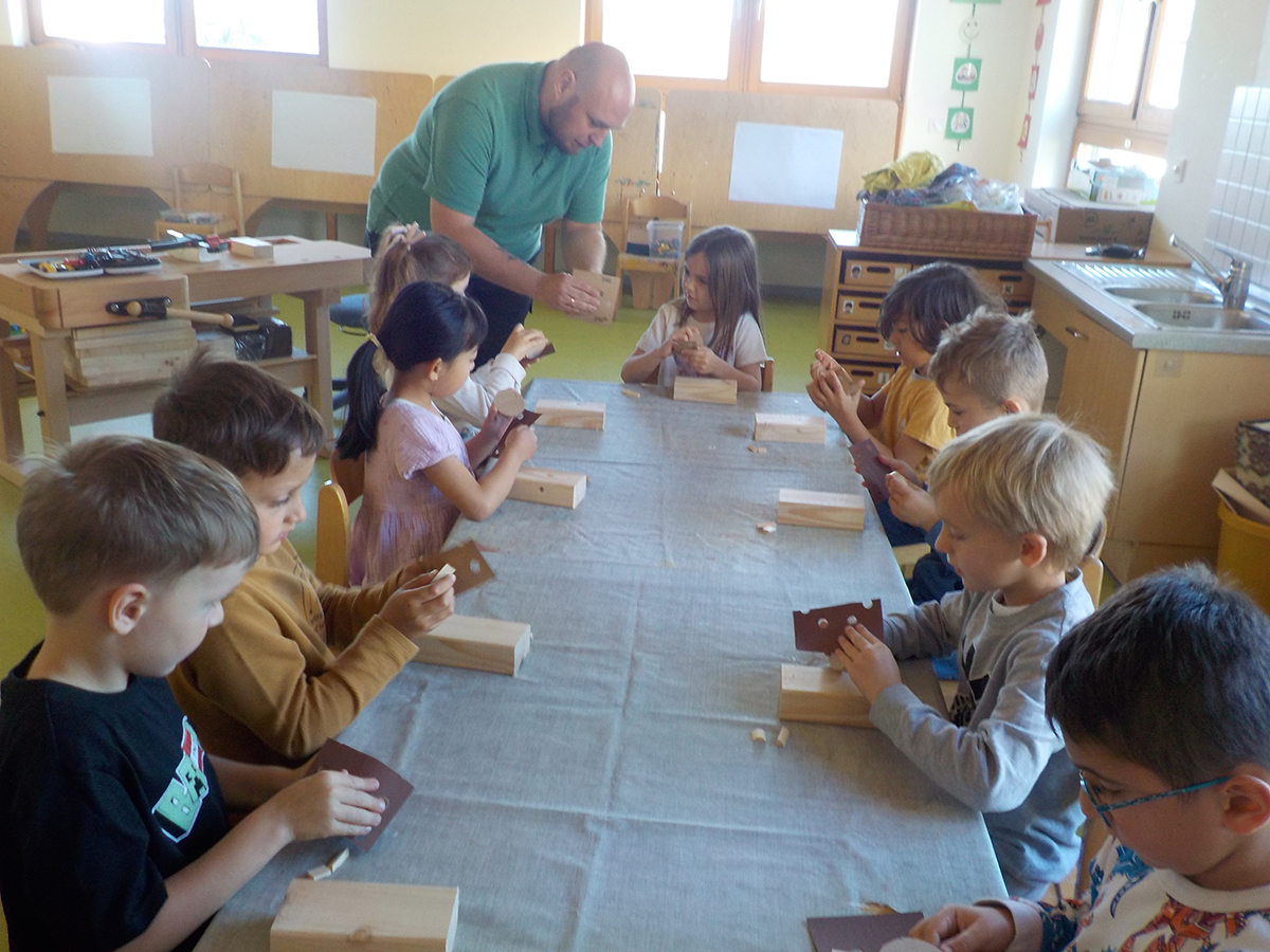Vorschulkinder gestalten Holz-Kameras – Kreativprojekt im Kindergarten St. Mauritius