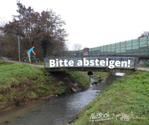(nu – 23.7.21) Vor allem Radfahrer, aber auch Fußgängerwerden bei der Nutzung der Leimbachbrücke – vom Konrad-Adenauer-Ring kommend – um Vorsicht gebeten. Eine turnusmäßige Untersuchung hat ergeben, dass einige sicherheitsrelevante Punkte nicht mehr erfüllt sind. Dazu gehört beispielsweise die Geländerhöhe, welche die heute vorgegebenen Sicherheitsstandards für Radwege, die über Brücken führen, unterschreitet. Die Sanierung der Brücke wird in der Haushaltsplanung für das kommende Jahr berücksichtigt.