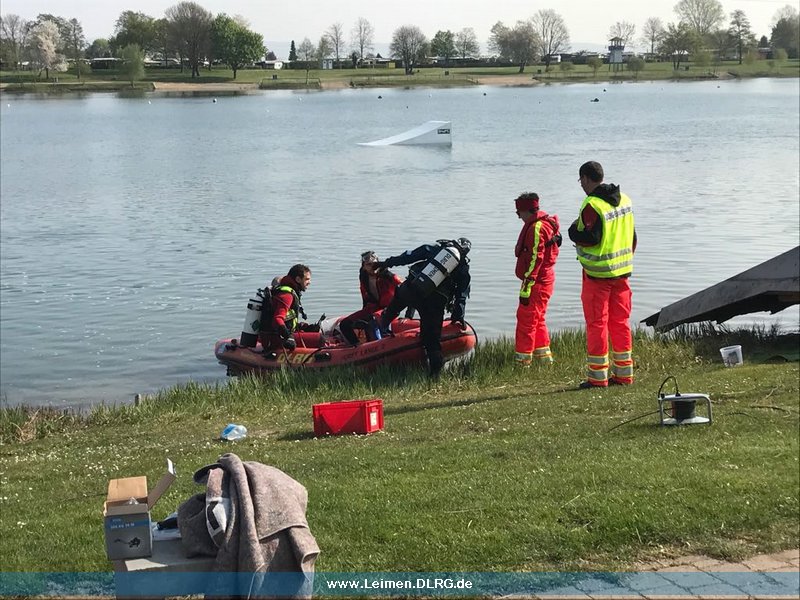 Aus diesem Grund hatten die Ortsgruppe Leimen und St. Leon eine gemeinsame Einsatzübung geplant. Einsatzszenario waren mehrere Personen unter Wasser. Es wurde angenommen, dass Jugendliche auf einer aufblasbaren Schwimminsel in den abgesperrten Bereich der Wasserskianlage gepaddelt sind. Dort war die Insel untergegangen, ein Säugling und ein Jugendlicher werden daraufhin nicht mehr an Land auf zu finden, da auch Augenzeugen berichteten, diese gesehen zu haben, als sie untergingen, wurden sofort Taucher mit der Suche beauftragt.