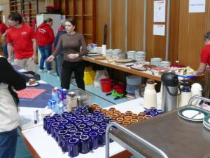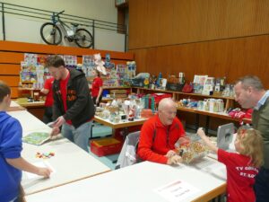 Ringsherum sorgten viele Helferinnen und Helfer für einen reibungslosen Ablauf. Es gab heiße Würste, Muffins, Laugenstangen, Apfelschorle, Kaffee aus der Thermoskanne. Die Preise standen auf einer großen Tafel. Alles war ehrenamtlich organisiert – vom Ausschank bis zur Technik – letztere (wie immer) von Dirk Kettenmann gemanaged.