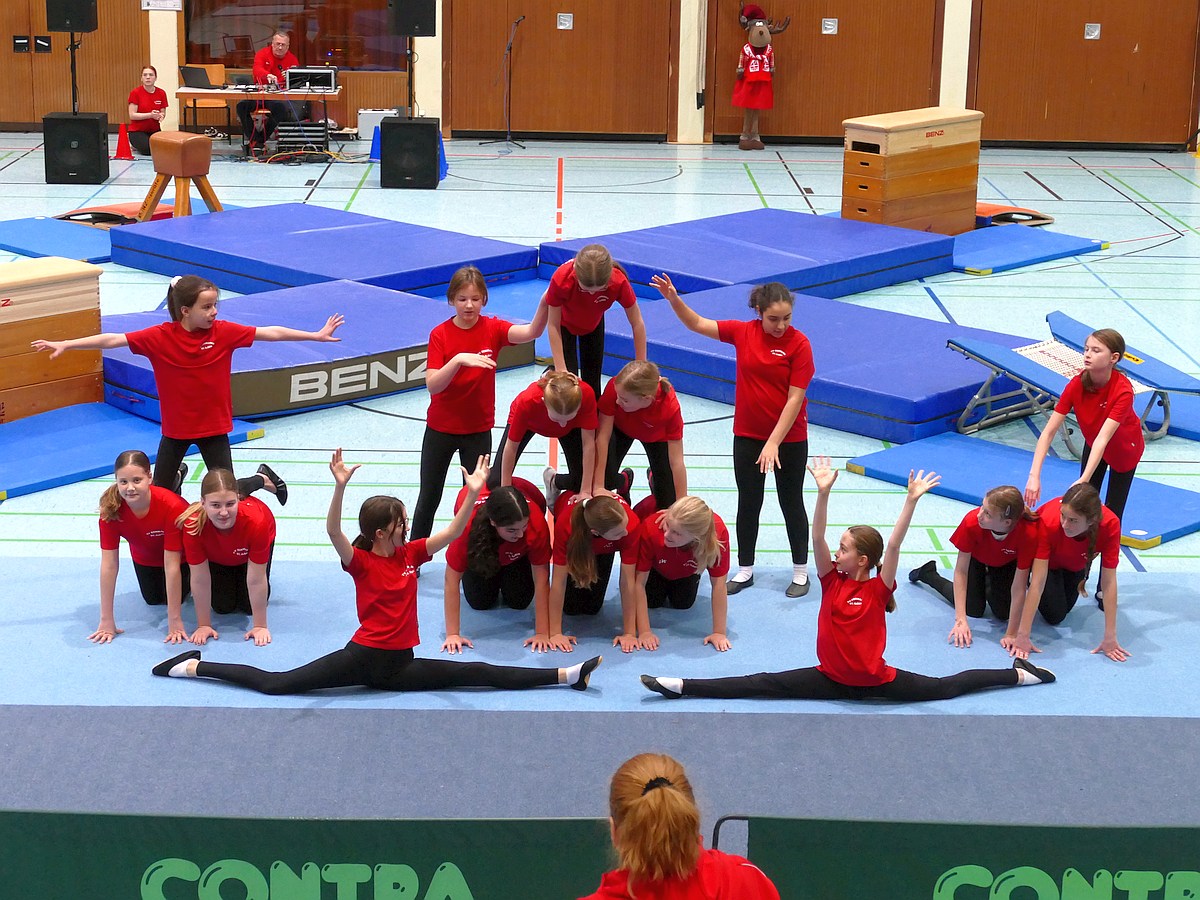 Was dann kam, war ehrlicher, freundlicher Sport. Die Kinder balancierten über Kästen, hüpften über Trampolinbahnen, zeigten Pyramiden, Spagate, Radschläge. Manche suchten noch schnell Blickkontakt zu Mama oder Papa auf der Tribüne. Und als der Applaus kam, ging manches Kind ein kleines Stück größer von der Fläche. Es war spürbar, wie viel Aufregung dabei war – und wie viel Stolz.