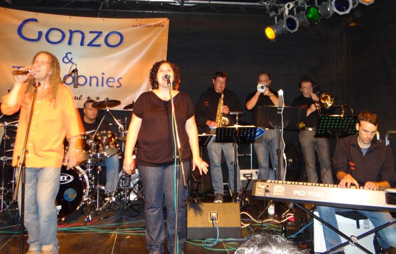 Auf der Bühne vor dem Rathaus heißten Gonzo und The Loonies dem Publikum tüchtig ein. Hier war die rockigere und lautere Seite zu Hause und die Besucher meist jünger. Die Bühnenshow von Gonzo ist tatsächlich mitreißend und ein humorvoller weiblicher „Groupy“ warf sogar seinen BH auf die Bühne, da Gonzo dermaßen von früheren Zeiten schwärmte, in denen das (manchmal) vorgekommen sein sollte, daß Erbarmen angesagt war. Kurz: Gonzo & The Loonies spielen nicht nur heißen Rock, sondern auch mit dem Publikum, daß dabei seinen Spaß hatte.