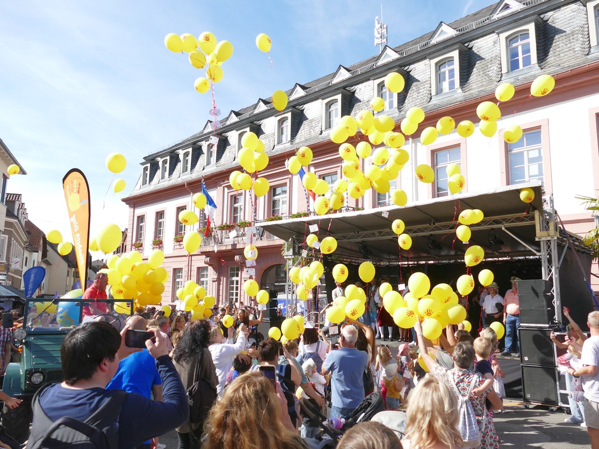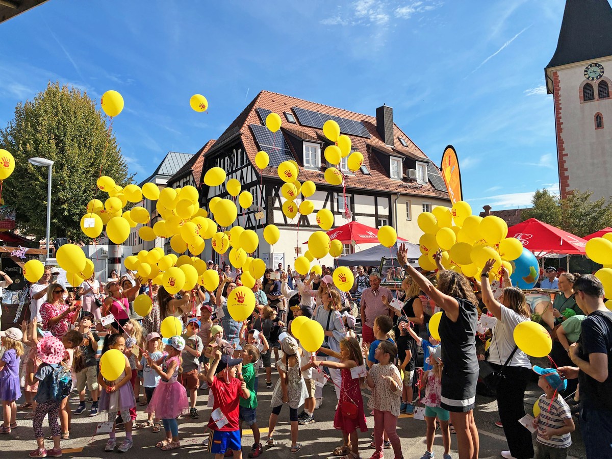 Weltkindertag und Kerweumzug – Gelbe Heliumballons trugen Wünsche in den Himmel