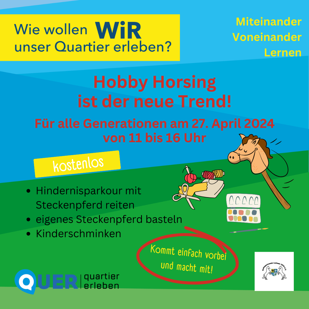· Hobby Horsing und Steckenpferd basteln mit dem Reitsportverein Leimen: Reitet mit dem Steckenpferd durch einen Hindernisparcours. Bastelt außerdem eure eigenen Steckenpferde, um noch besser über die Hindernisse zu kommen.