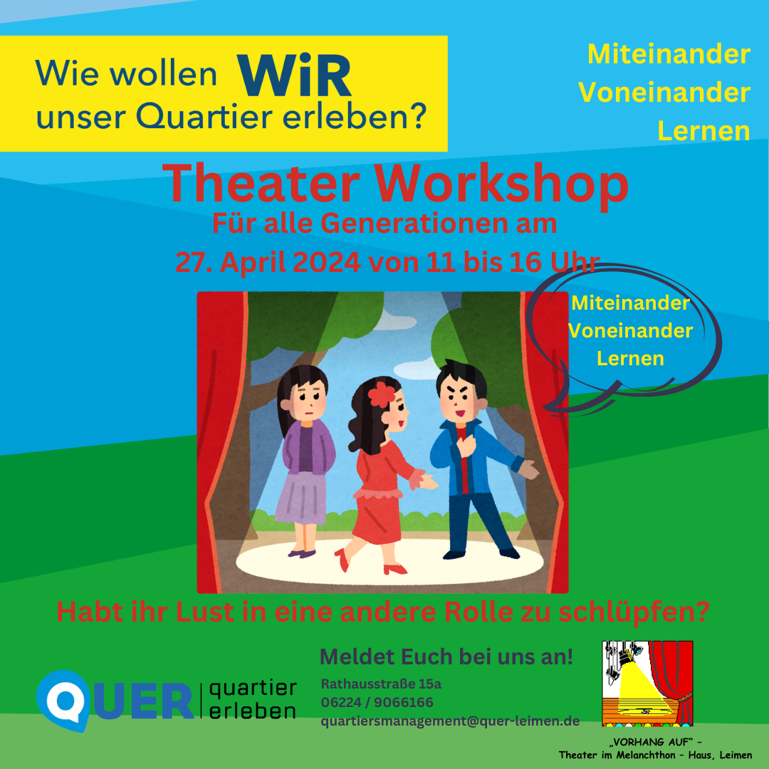 1. Theater Workshop von 11 bis 16 Uhr vom Theater „Vorhang Auf“ in Leimen mit Hans-Jürgen Metzner