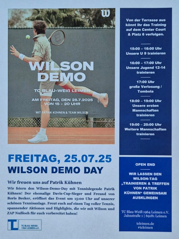 Wilson Demo-Day mit Patrik Kühnen beim Tennis-Club Blau-Weiß Leimen