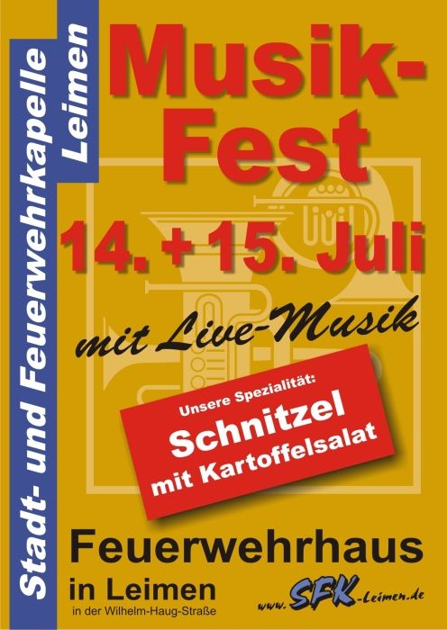 - Leimen, ab 11.00 Uhr, Stadt- und Feuerwehrkapelle Leimen: Musikfest im Feuerwehrhaus