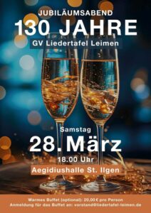 In diesem Jahr feiert die Liedertafel Leimen 130 Jahre ihres Bestehens. Gerade in der heutigen Zeit ist es keine Selbstverständlichkeit, dass ein Gesangverein immer noch da ist. Wir finden, das ist ein sehr guter Grund, dies gebührend zu feiern.