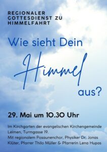 (fwu – 21.5.25) Am Donnerstag, den 29. Mai, wird der Kirchgarten der evangelischen Kirchengemeinde Leimen zur offenen Himmelsbühne: Um 10.30 Uhr beginnt dort der diesjährige regionale Himmelfahrtsgottesdienst – mit Gästen aus Nußloch, St. Ilgen, Sandhausen und Leimen selbst.